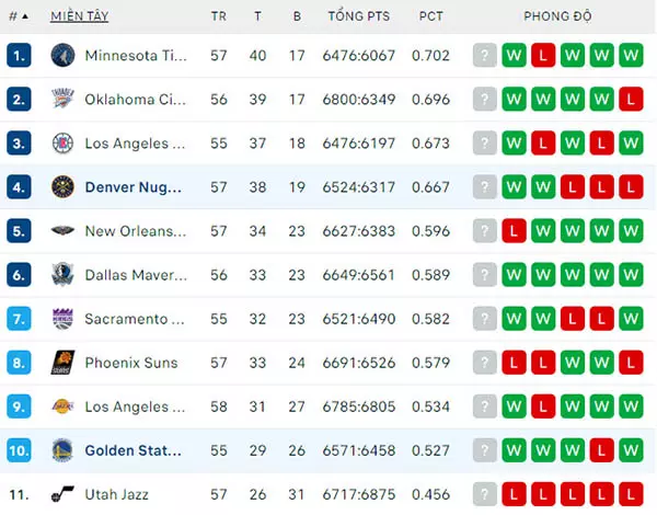 Phong độ Denver Nuggets